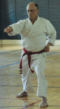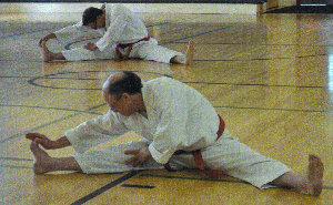 | Basics classes include training in traditional basic forms (left), which develop self-defense skills, patience, concentration, strategy, balance and timing, and function as both exercise and moving meditation. This student is doing basic form # 1. No one, at any age or level of expertise, outgrows the need to practice basics. | |||||||||||||||||||||||||||