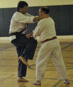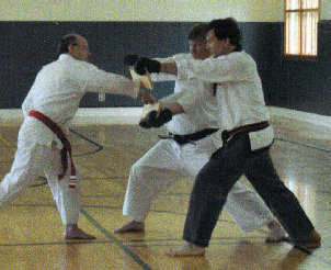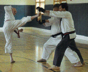 | These students are demonstrating some basic self-defense applications from traditional hyung (forms). This knowledge is a regular feature of training at this school. | |||||||||||||||||||||
